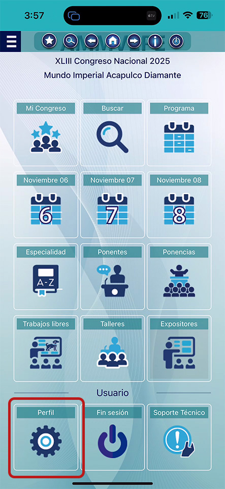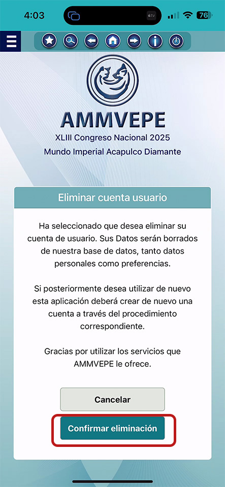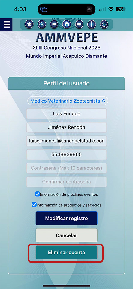 OPCION 1. Ingresando a la APP y eliminar su perfil de usuario1.- Deberá iniciar sesión (login) en la app de AMMVEPE2.- Ahora, en el portal de opciones de la aplicación active el botón PERFIL